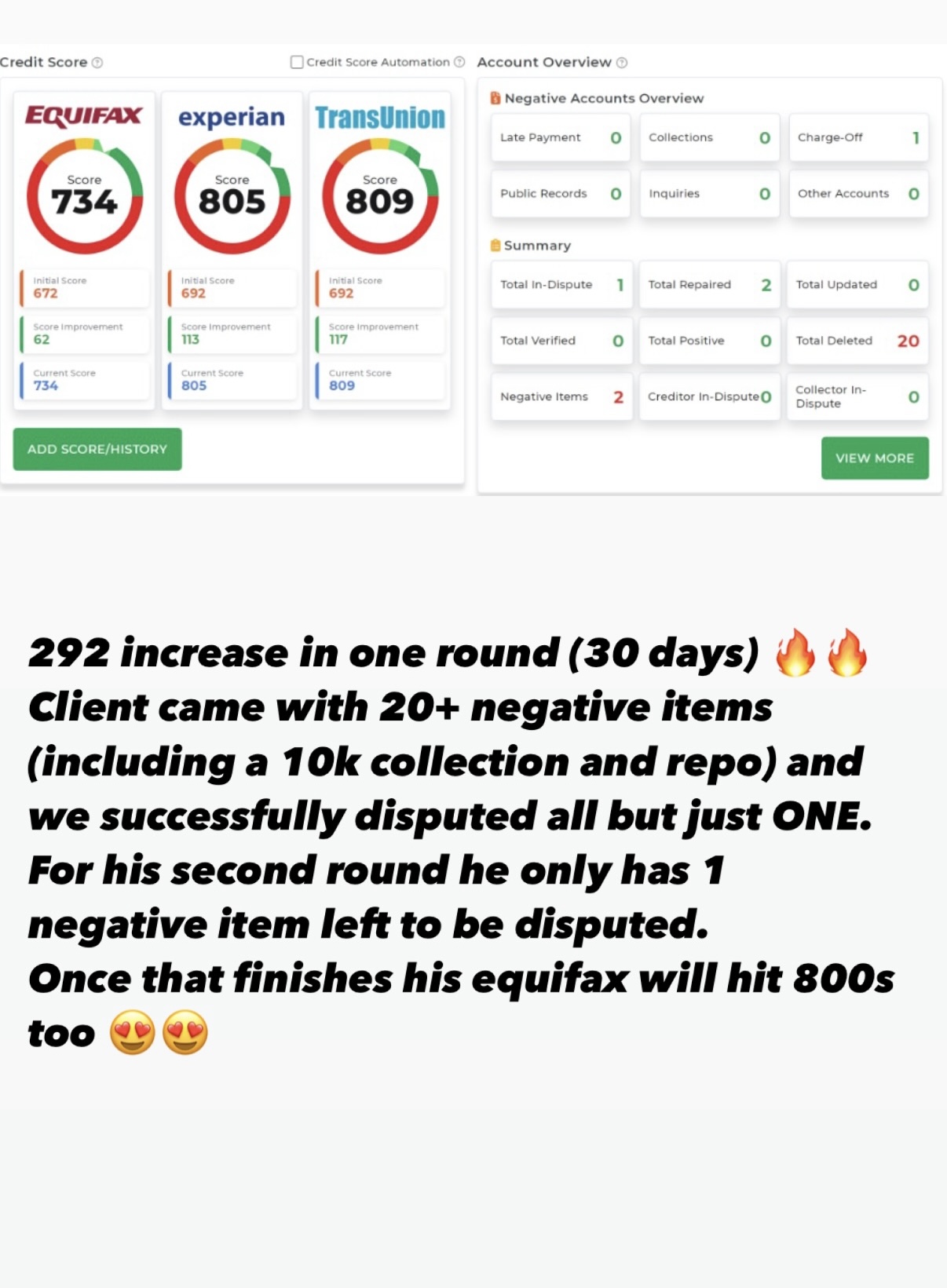 By using the very same strategies I now offer my clients, I transformed my credit score from the 400s to an impressive 800 in less than a year. That transformation didn’t just fix my credit—it changed my life. I eliminated financial burdens, achieved financial freedom, and leveraged my credit to build cash flow and wealth through real estate investments.